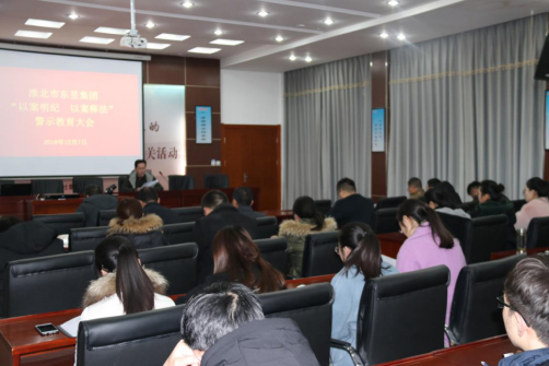 11 06月2019 了解詳情 淮北市東昱集團召開“以案明紀 以案釋法”專題警示教育會議 12月7日,東昱集團召開“以案明紀 以案釋法”專題警示教育會議,集團公司全體員工觀看了警示教育片《戒鑒與警醒》系列節目。